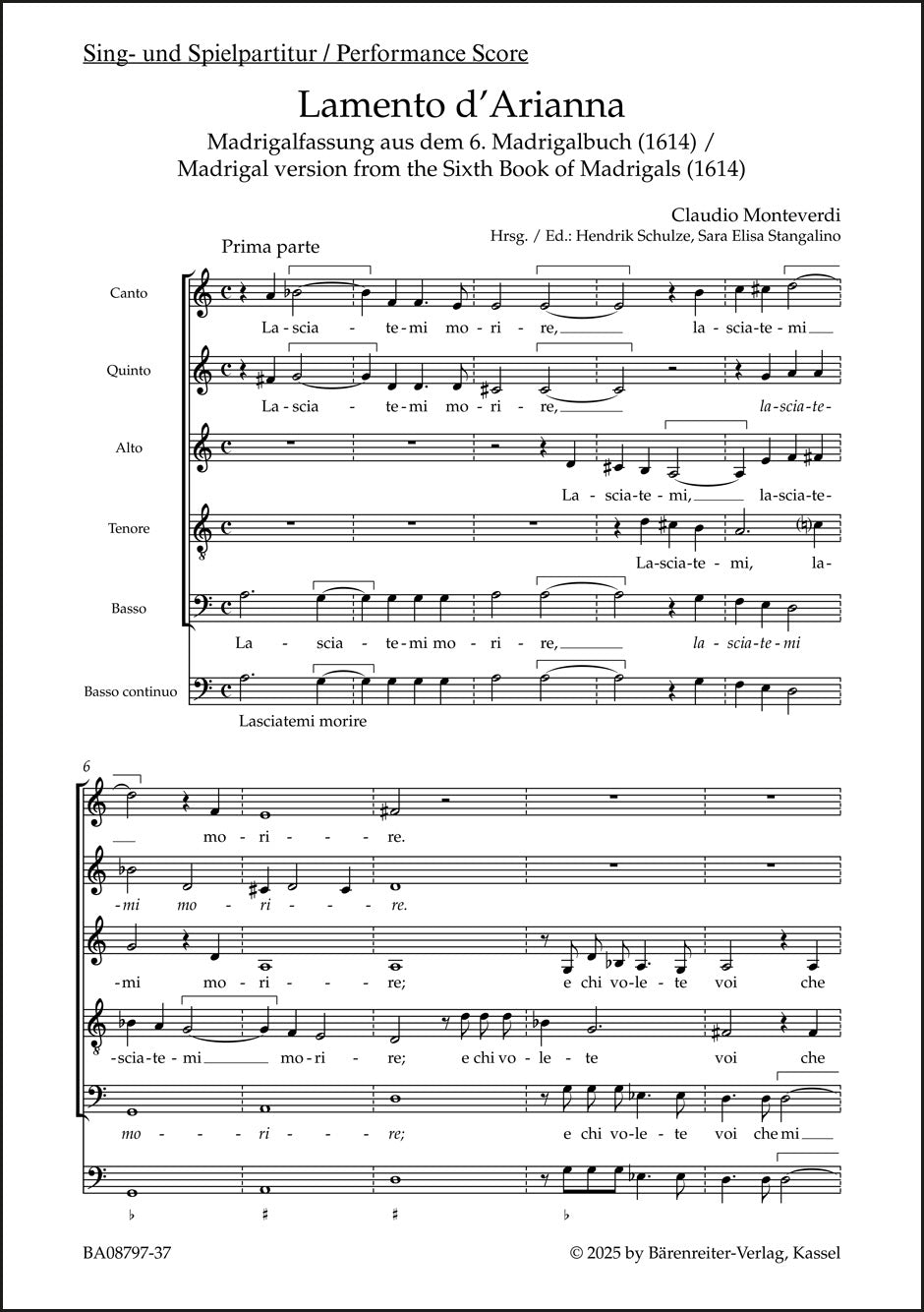 | タイトル | Lamento d'Arianna for 5 parts (SSATB) and basso continuo (Singing Score) |