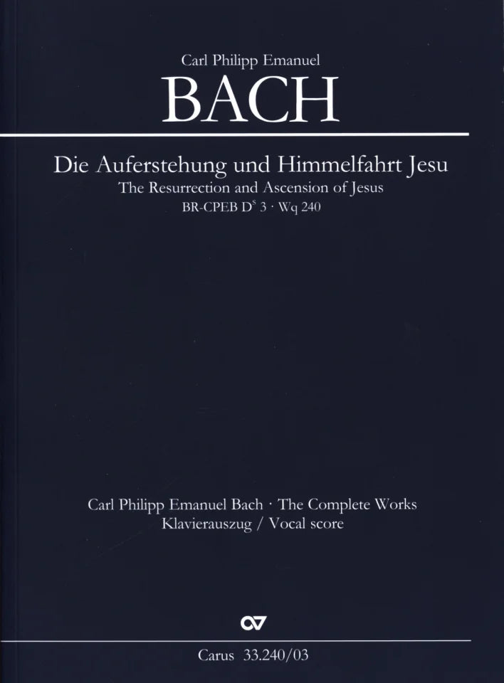 | タイトル | Die Auferstehung und Himmelfahrt Jesu(ヴォーカル・スコア)BR-CPEB D 3 (Wq 240) |