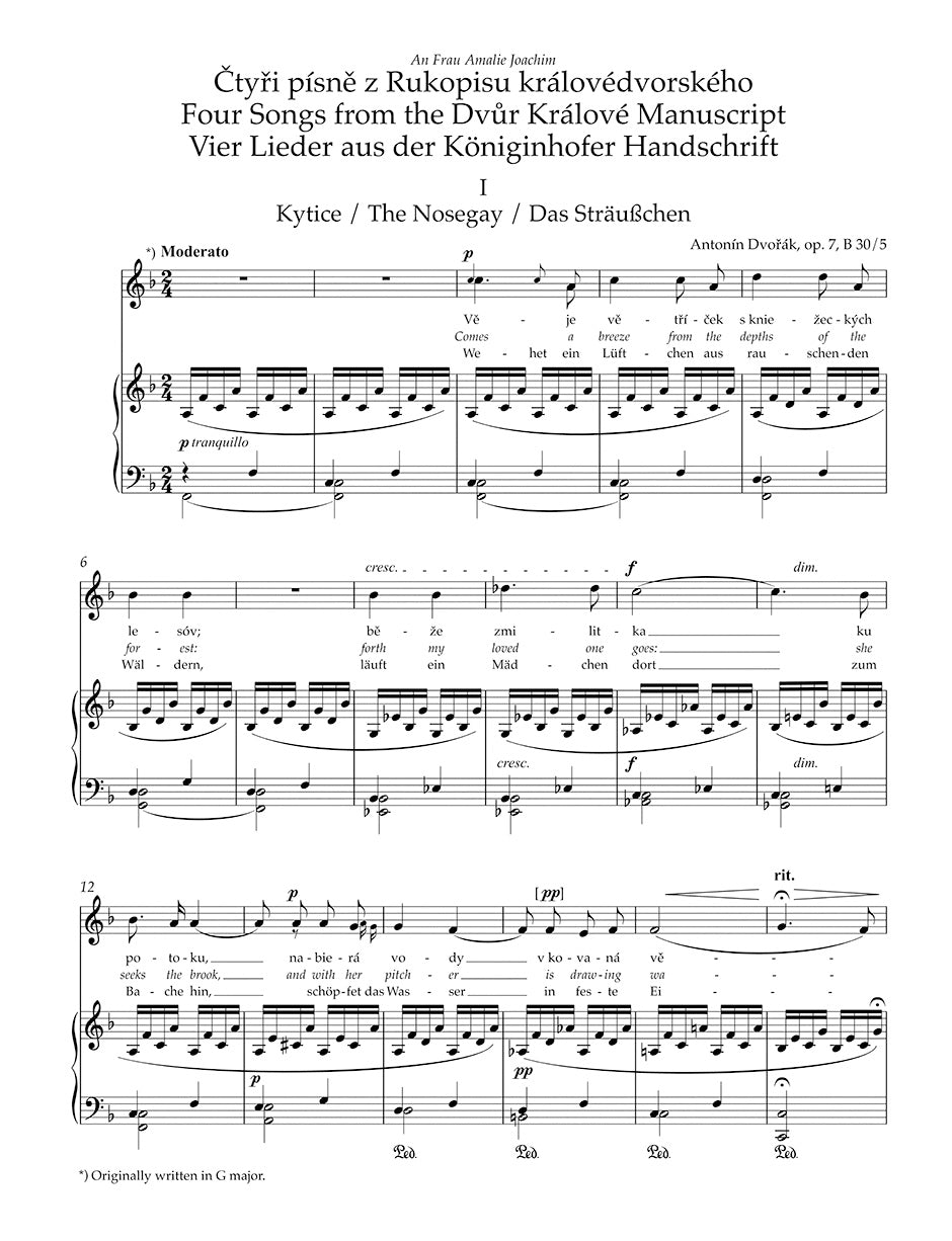 The first Urtext edition of Dvořák's early songs, featuring several first publications. This volume is part of the five-volume new Urtext edition of all Dvořák's songs for voice and piano. It includes a detailed Foreword and a Critical Commentary evaluating both print and manuscript sources to document the variants and original intentions of the composer.