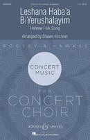 This folk song arrangement expresses the Jewish diaspora’s community’s hope for reunion next year in Jerusalem. It is comprised of two distinct sections: a newly-composed, sorrowful theme, expressive of unrequited longing, and the traditional folk song itself, lively with excitement and hope.This piece was commissioned by the 2011 ACDA Women’s Choir R & S Commissioning Consortium, Iris S. Levine, National Choir and is arranged for two soloists and a soprano and alto voice choir.